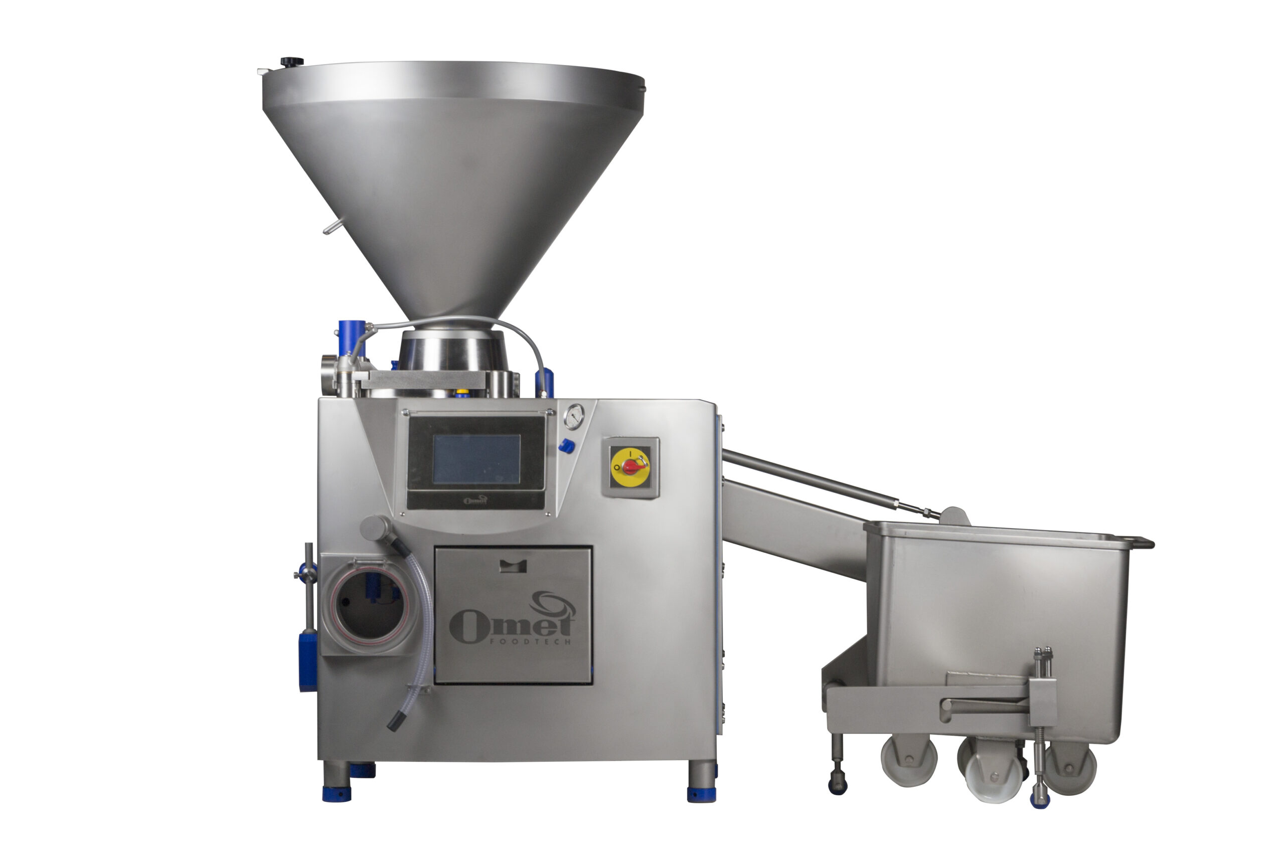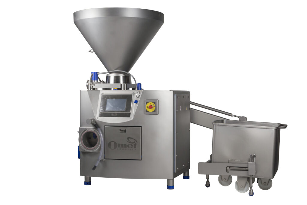 La F300 è l’insaccatrice ideale per la lavorazione di prodotti delicati, progettata per garantire precisione e massima qualità. La pompa d’insacco a pistoni OMET, con rotore in acciaio inox, riduce al minimo gli sfregamenti del prodotto e assicura un trattamento estremamente delicato, evitando qualsiasi fenomeno di smelmamento anche a velocità elevate.