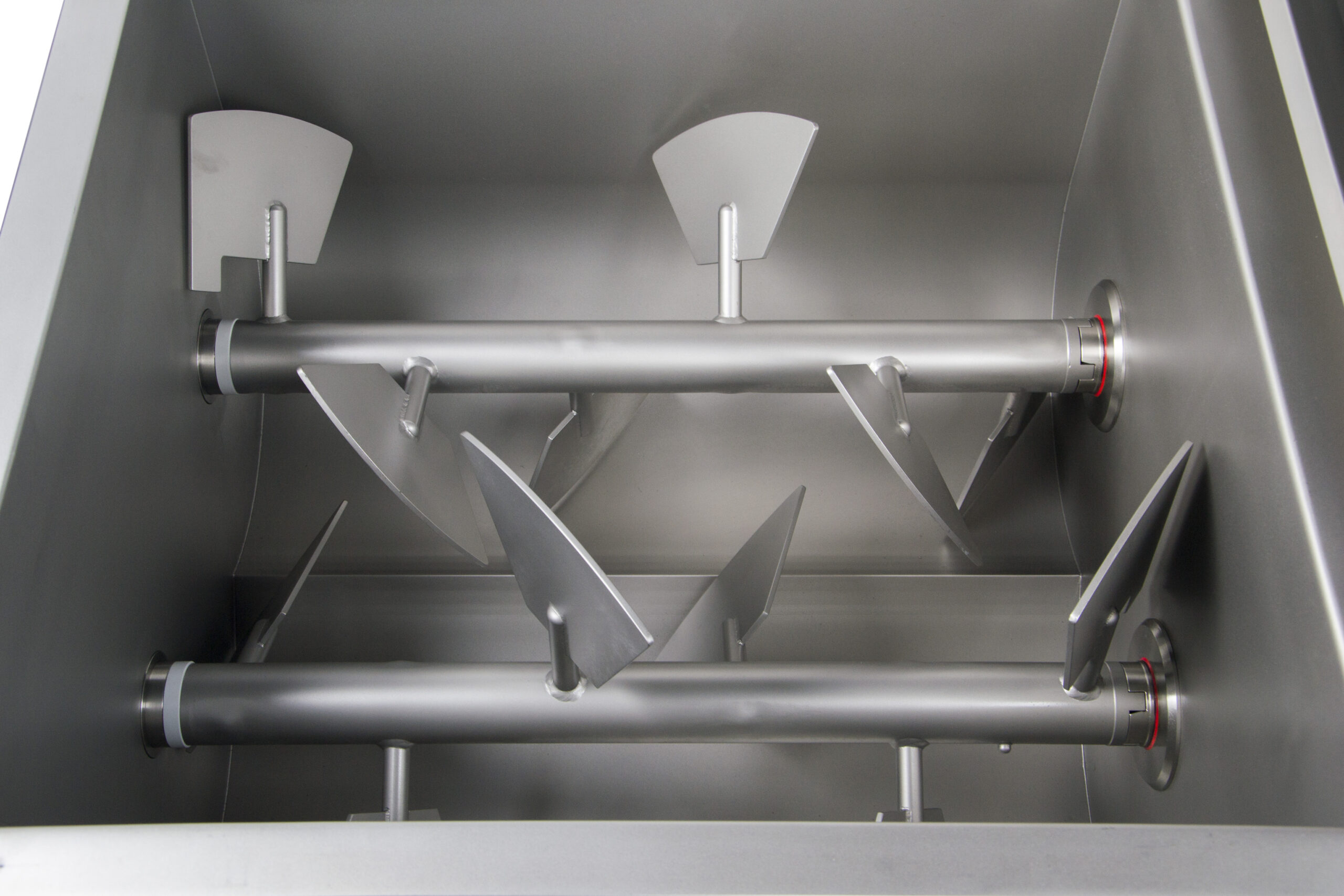 Il sistema di doppio albero con palette intersecanti assicura un trattamento delicato e la realizzazione di impasti omogenei. Lo scarico avviene in pochi secondi tramite una portella ampia e smontabile senza utensili, che facilita anche le operazioni di pulizia. È inoltre possibile installare, anche successivamente, un caricatore idraulico per vagonetti da 90, 120 o 200 litri.